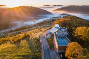 Tavaly tavasszal nyílt meg a Bükki Csillagda, a Bükki Nemzeti Park Igazgatóság csillagászati és természetismereti látogatóközpontja a Bükki Nemzeti Park szívében, Répáshuta mellett. A táj már önmagában is megér egy kirándulást, de az igazi csodát természetesen a csillagok világába vezető, nem is annyira képzeletbeli út jelenti. Fényszennyezésmentes terület – mondják azokra a helyekre, amelyekről mindenféle idegen fény zavaró hatása nélkül, háborítatlanul nézhetjük a csillagokat. A Zselic és a Hortobágy után, 2017-ben így érdemelte ki a csillagos égbolt-park címet a Bükki Csillagda környéke, ahonnan tiszta éjszakákon akár háromezer csillagot is megszámlálhatunk szabad szemmel. A legmodernebb technológiával felszerelt intézmény ezt a csodás távoli világot hozza még közelebb a látogatóhoz. A Büki Csillagda ráadásul messze többet ad annál, hogy egy különleges távcsővel testközelbe hozhatjuk a messzi csillagokat. A kiállítóterembe lépve a messzi távolból vethetünk pillantást a galaxisunkra, a Tejútrendszerre, miközben megismerhetjük mindennek a születését is. Közelebbről is szemügyre vehetjük a Naprendszert és annak központi csillagát, magát a Napot, amelyhez kötődően számtalan izgalmas információhoz is juthatunk még, megismerve például a bolygók mozgásán alapuló időszámítás kialakulását is. Itt látható Magyarország legnagyobb meteoritkiállítása is, ahol nemcsak nagyítóval vehetjük szemügyre az űrből származó különleges tárgyakat, hanem akár a kezünkkel is megtapinthatjuk azokat. A Csillagda másik attrakciója a terasz melletti 6,7 méter átmérőjű kupola: az Ausztráliából származó forgatható tetőszerkezet a legnagyobb, sorozatban gyártott kupolának számít. A kupolából egy nyitható ablakon át, a több, mint száz kiló súlyú precíz távcsővel tekinthetünk az égre, miközben az építmény többféle távcsőnek is biztonságos elhelyezést nyújt, amelyek közül az egyik, hihetetlen látványt garantálva, még a Nap biztonságos megfigyelésére is alkalmas. Semmiképpen nem szabad kihagyni az éjszakai égbolt vizsgálatára hívó 61 cm-es tükrös távcső kipróbálását sem, aminek használatára az előre meghirdetett, 3 órás éjszakai programok keretében nyílik lehetőség. A kupola a belépőjegyen feltüntetett időpontban, a maximum 30 perces látogatási idő alatt, irányított szakvezetéssel tekinthető meg. Miközben nappal a különleges naptávcsővel biztonságosan szemlélhető a Nap, éjszaka – a derült idő függvényében – a csillagokat, bolygókat figyelhetjük meg közelebbről. Felhős idő esetén alternatív programokkal várják a látogatókat. A Csillagda egy olyan, 50 férőhelyes teremmel is rendelkezik, amelynek döntött foteljeiből maximális kényelemben nézhetünk fel arra a 8 méter átmérőjű, kupola alakú felületre, ahol a legjobb kép- és hangminőség mellett élvezhetjük a csillagos égbolt látványát, vagy azt a teljes kupolát betöltő „fulldome” filmet nézzük, amely egy speciális szemüvegen át, akár 3D-ben is megtekinthető. Emellett egy speciális 3D-s VR-szemüveg és egy velünk együtt mozgó platform révén, akár még űrsétát is tehetünk a Holdon, vagy netán végigszáguldhatunk a Mars egyik kanyonján, vagy maradhatunk is a földön, ahol egy valósághű élmény keretében, a Bükk-fennsík felett hajthatunk végre sárkányrepülést. A leghosszabb program a planetáriumhoz kötődik, ahol a kontinens egyik legnagyobb, 8 méter átmérőjű kupoláján át tekinthetjük meg az égbolt különleges csodáit: a több mint 100 négyzetméter nagyságú felületre kivetített látványt négy, egyszerre üzemelő lézerprojektor biztosítja, 4K minőségben, miközben az összhatást a legmagasabb hangminőséget garantáló Dolby Digital hangrendszer teszi tökéletessé.